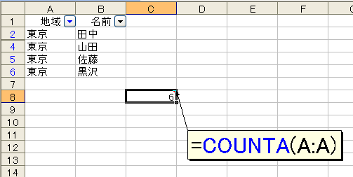 したがって、COUNTA関数の結果と、SUBTOTAL関数の結果が