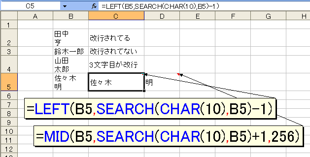 =LEFT(B5,SEARCH(CHAR(10),B5)-1)