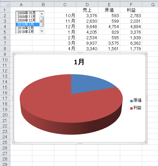 (8)リストボックスで選択すると、その月のグラフが表示されます