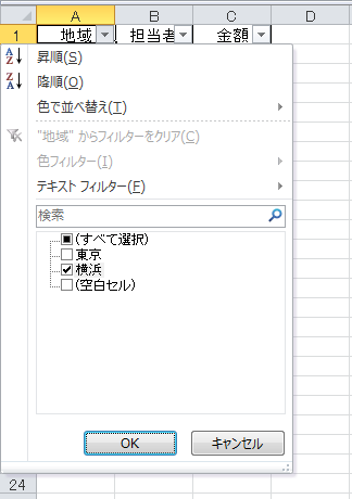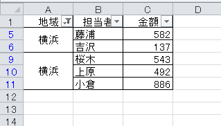 もちろん、Excelのオートフィルタは、セルを1つずつチェックしますので「横浜」で絞り込んだとき、クリアされちゃった空白のセルは「横浜じゃない」と判断します。せっかくセル結合という便利な機能があるのに、この仕様はちょっと不親切な気もします。ちなみに結合セルは、並べ替えもできませんしね。確かに、Excelの仕組みを考えると、結合セルってのはすごくイレギュラーな機能だと思います。Microsoftが、結合セルに対して多くの制約を設けたのも、技術的には想像がつきます。
