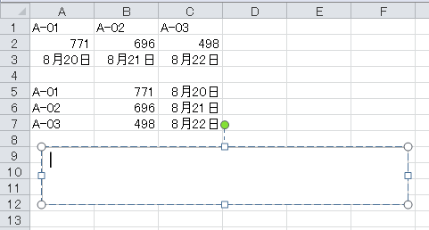 手順が多くて、面倒くさいですね。何とか、Excelの標準機能だけ(関数を除く)で実現しようとしたら、こうなってしまいました。まぁ、できるのは間違いありません。ただし、Excel 2007以降です。Excel 2003までのテキストボックスでは、上記の手順6で貼り付けができません。