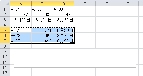 - 行列を入れ替えて貼り付けた表を選択してコピーします