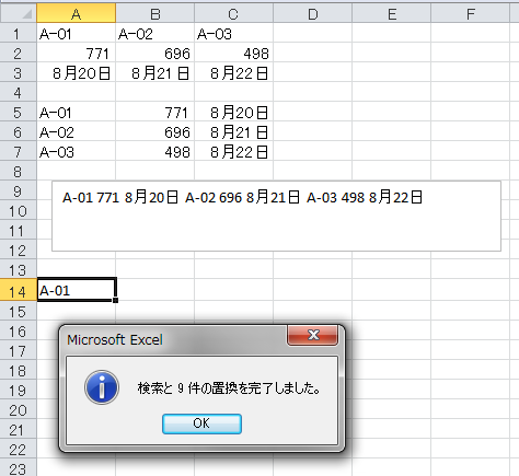 - 改行されたセルを編集状態にして、中の文字列をコピーします