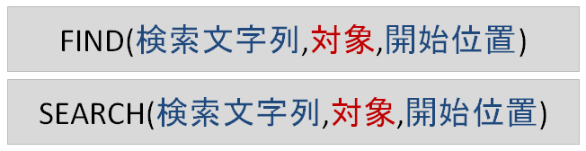 - FIND関数…大文字と小文字が区別される。ワイルドカードを使えない
