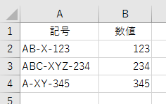 次のようなデータで、ハイフン(-)から右側を抜き出すには、次のように考えます。
