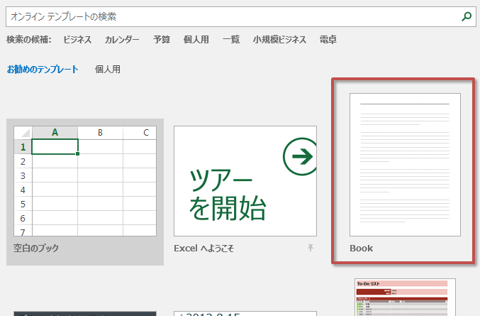 これで完了です。Excelを終了させて、起動し直してください。スタート画面でテンプレートが表示されたら「個人用」をクリックして開きます。