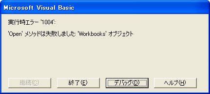 ここで[OK]ボタンをクリックすれば読み取り専用で開かれるのですが、[キャンセル]ボタンをクリックするとエラーになります。