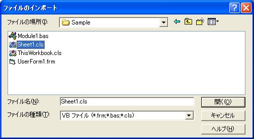 Sheet1をエクスポートして保存されたクラスモジュールをインポートすると、Sheet1のオブジェクトモジュールではなく、クラスモジュールとしてインポートされます。