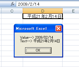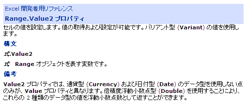 Valueプロパティは、セルに入力されているデータを返すはずです。日付を入力したセルには、シリアル値という数値が入力されているのですが、Valueプロパティは、その数値を返してくれません。