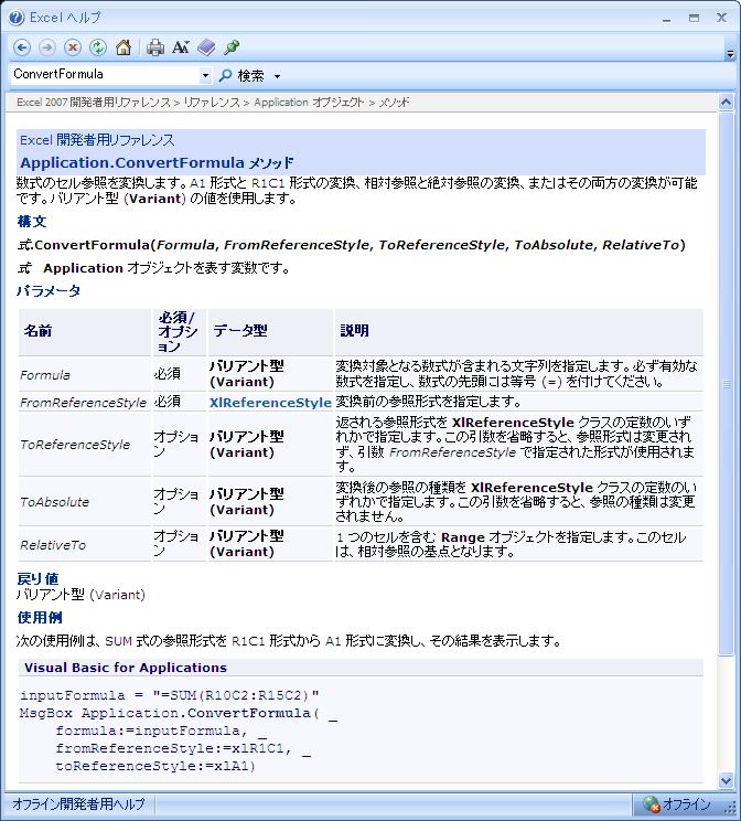 相対参照形式と絶対参照形式の変換」を行うケースが多いでしょう。そのときに指定するのが、4番目の引数ToAbsoluteです。しかし、ヘルプでは、そのToAbsoluteの解説が間違っています。