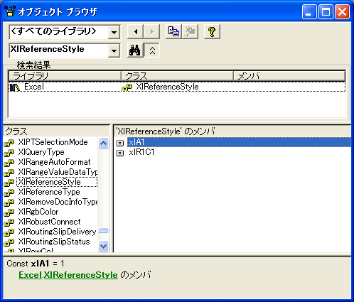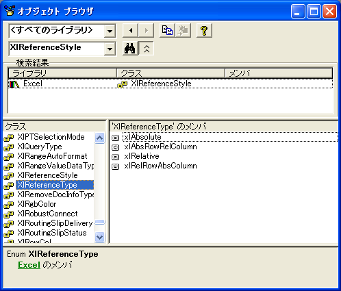 ではありません。オブジェクトブラウザでXlReferenceStyleの下に見えている