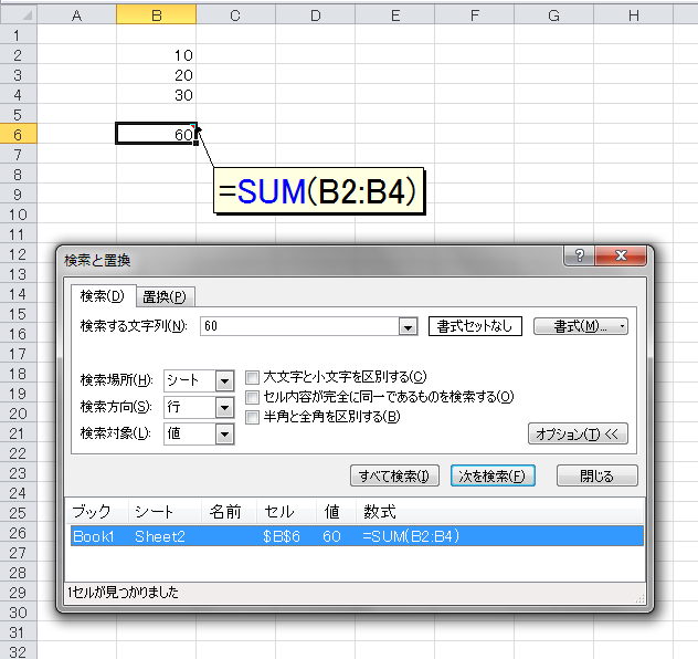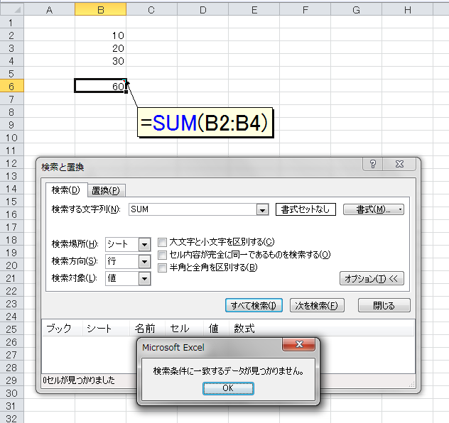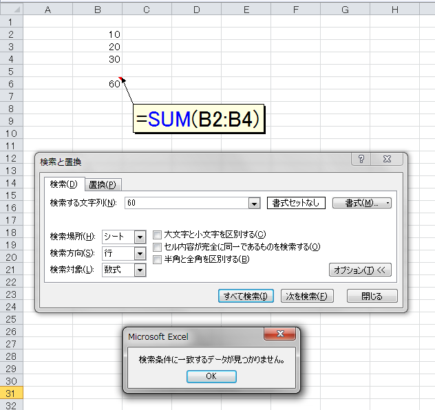 msg = msg & "xlFormulas:見つかりません" & vbCrLf