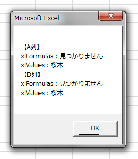 msg = msg & "xlValues:見つかりません" & vbCrLf