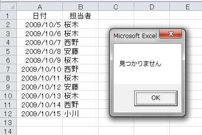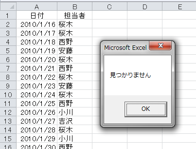 MsgBox "見つかりません"