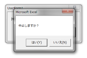 If MsgBox("中止しますか?", vbYesNo) = vbYes Then StopFlag = True