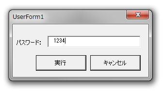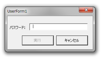UserFormを表示しても、正しいパスワードを入力しないと[実行]ボタンをクリックできません。