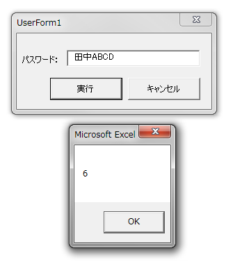 そして、文字数を返すLen関数ではなく、バイト数を返す