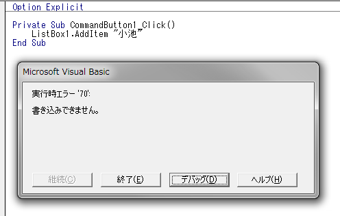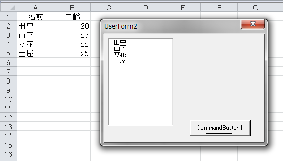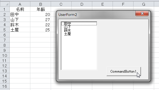 UserForm表示中に、セルのデータが変更されると、リストボックスにも反映されます。