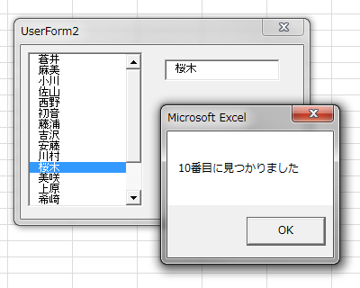 MsgBox ListBox1.ListIndex & "番目に見つかりました"
