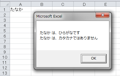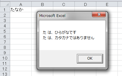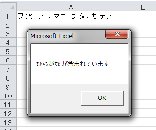 MsgBox "ひらがな が含まれています"