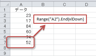 でOKです。しかし、データが入力されている最終セル(ここではセルA7)がマクロを実行するたびに異なる場合はどうでしょう。