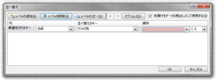 【セルの背景色で並べ替えるとき】