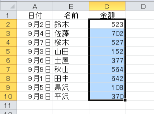 ここでは、次のようなデータを例にします。