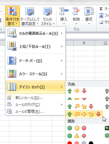 2.条件付き書式のアイコンを設定します
