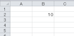 セルB2に「10」と入力しています。書式などは何も設定していません。セルの背景色を調べると