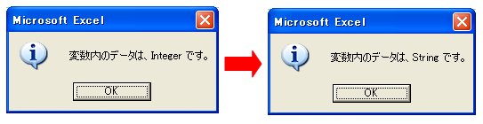 MsgBox "変数内のデータは、" & TypeName(tmp) & " です。", 64