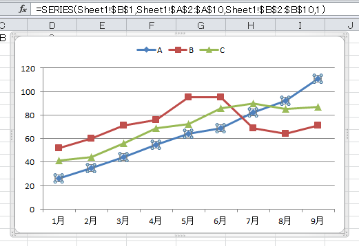 .SeriesCollection(1).Formula = 系列Aの数式