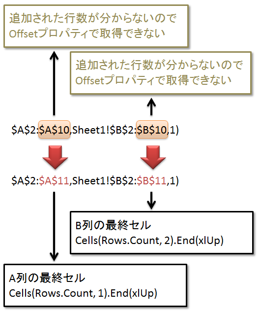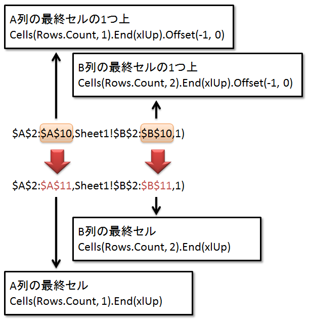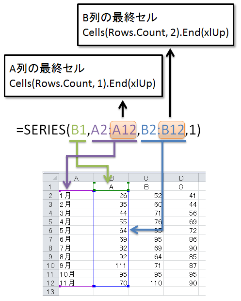 系列Aの数式 = Replace(系列Aの数式, B列の最終セルの1つ上, B列の最終セル)