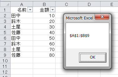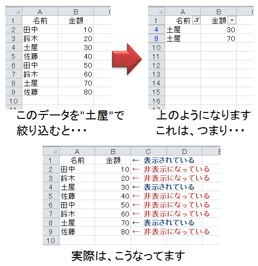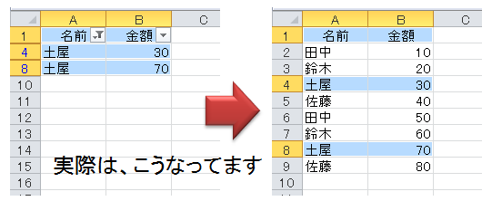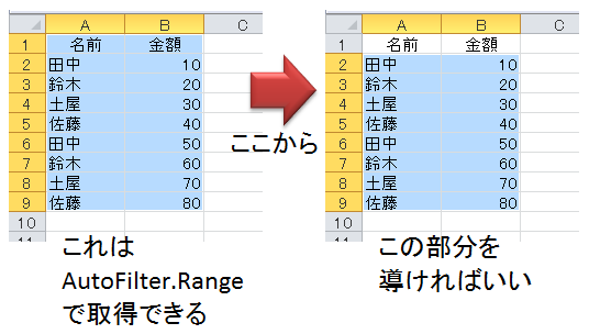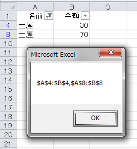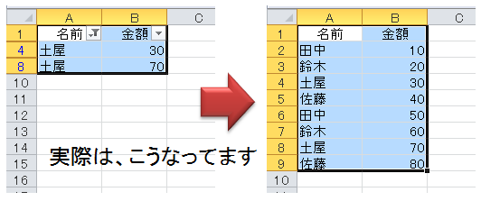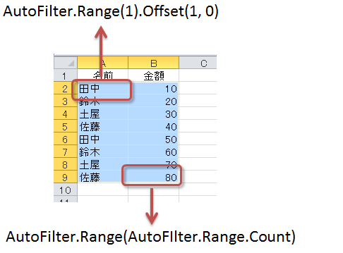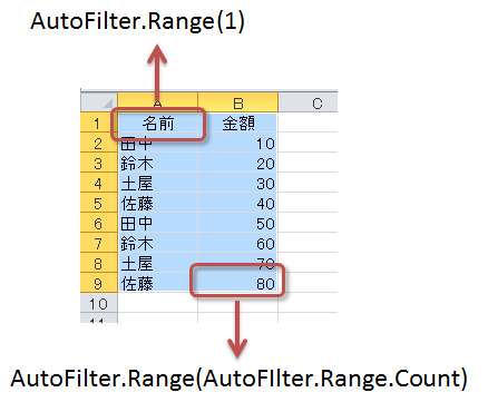 Range("A1").AutoFilter Field:=1, Criteria1:="土屋"