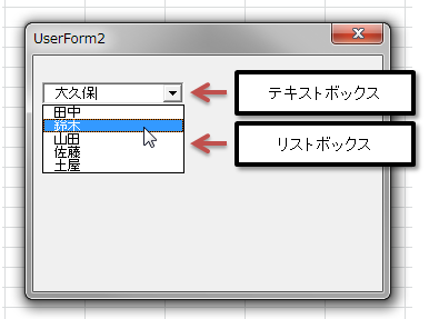 ですから、テキストボックスとリストボックスの使い方を知ってれば、それほど苦労しないと思うのですが、意外と質問が多いコントロールでもあります。ここでは、