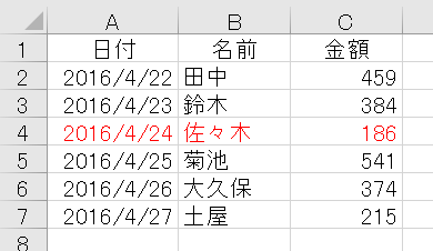 Range(左上セル, 右下セル) です。今回は長方形ではなく、1列の選択ですから、