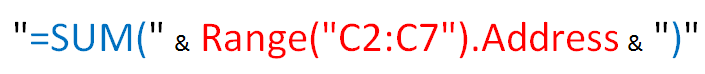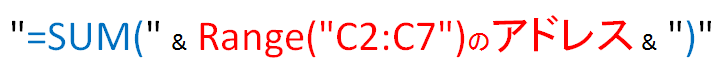"C2:C7" のところは、計算する範囲のアドレスです。もし、このセル範囲が固定されていたなら、ここは Range("C2:C7") のことです。欲しいのは、そのセル範囲のアドレスですよね。