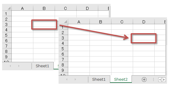 Sheet1のセル範囲で、その左上が別のシートのセルA3、右下も別のシートのC3…なんてことは、あり得ません。シートが違うんですから。つまり、
