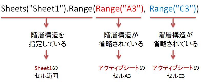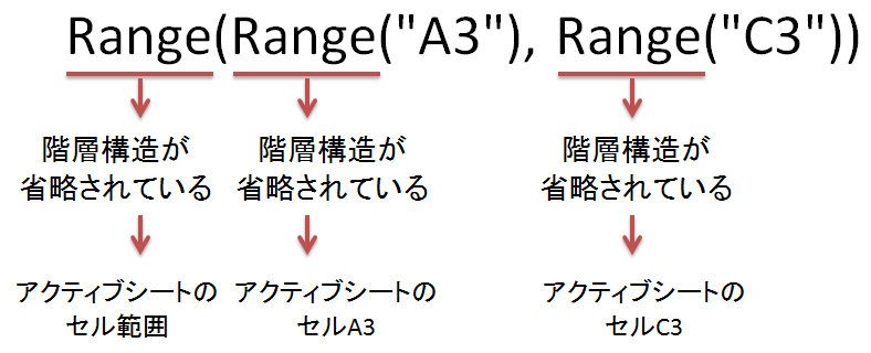 まぁ、実際にはこんな書き方をしませんが、要するにこういうことです。Range()の中に、またRangeとかCellsなどが