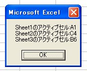 buf = buf & s.Name & "のアクティブセル:" & ActiveCell.Address(0, 0) & vbCrLf