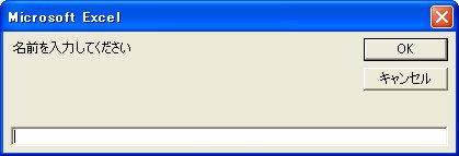 実際のマクロでは、InputBoxの返り値を判定する処理が必要です。なぜなら、[キャンセル]ボタンがクリックされた場合は処理を中止しなければならないからです。では[キャンセル]ボタンがクリックされると、どんな値が返るのでしょうか。