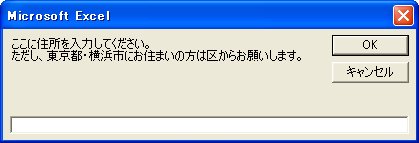 buf = Application.InputBox(Prompt:="住所を入力してください。")