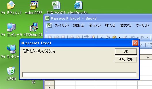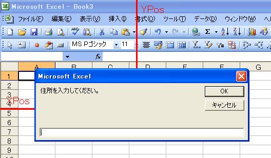 buf = InputBox(Prompt:="住所を入力してください。", XPos :=1000, YPos :=2000)