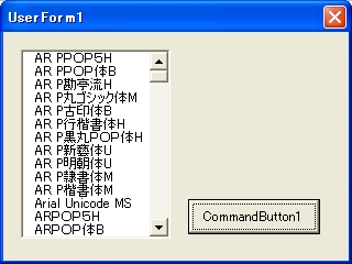 Private Sub CommandButton1_Click() Dim i As Long With Application.CommandBars("Formatting").Controls(1) For i = 1 To .ListCount ListBox1.AddItem .List(i) Next i End With End Sub