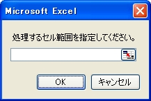 上図のように、処理の対象とするセル範囲をユーザーに選択してもらいたい場合があります。表示しているコントロールは、Excelの標準機能でよく使われていますので、ビギナーが操作するときでも理解しやすいでしょう。ちなみに、テキストボックスの右にある、クリックするとダイアログボックスが小さくなるボタンの正式名称は