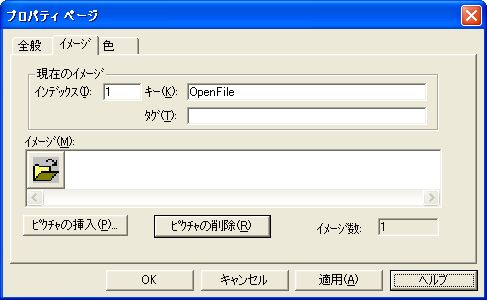 実行すると、[プロパティページ]ダイアログボックスに「open.bmp」が登録されます。