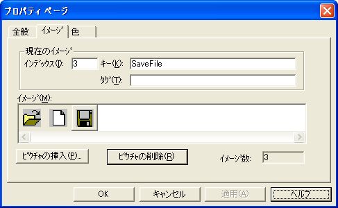 同じ手順で、「new.bmp」を挿入して「NewFile」という名前をつけます。さらに、「save.bmp」を挿入して「SaveFile」という名前をつけます。