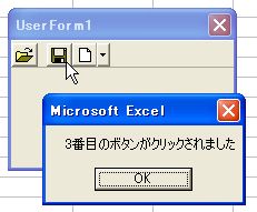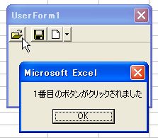 UserFormでツールバーを使う方法です。外部コントロール(MSComctlLib)を使いますので、お使いのパソコンにインストールされていない環境では使用できませんが、よほど特殊だったり、古い環境でなければ使用できるはずです。ちなみに、。MSComctlLibのファイル名はC:\WINDOWS\System32\MSCOMCTL.OCXです。