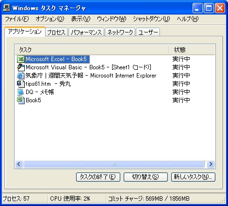 If task.Visible = True Then ''タスク(プロセス)が実行中だったら