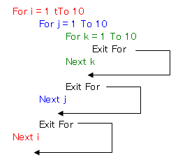 For NextステートメントやDo Loopステートメントなどによるループから強制的に抜け出るには、Exitステートメントを使います。