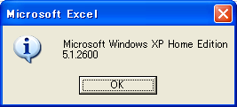 さてさて、このようにVersionプロパティでExcelのバージョンを判定できるのですが、本稿のテーマは「OSのバージョンを調べる」でした。マクロによっては、Excelのバージョンだけでなく、OSの種類によっても動作が異なる場合があります。Windows XPでは動くけどWindows 98はエラーになる・・・というように。しかし残念ながらOSの種類を判定するコマンドはVBAにありません